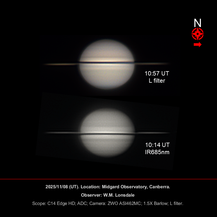 On the 8th both the seeing and transparency were acceptable but not great. The image of Saturn was a little dim and I alternated between using the apodizer and observing without it.