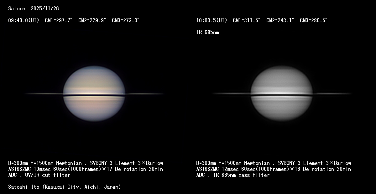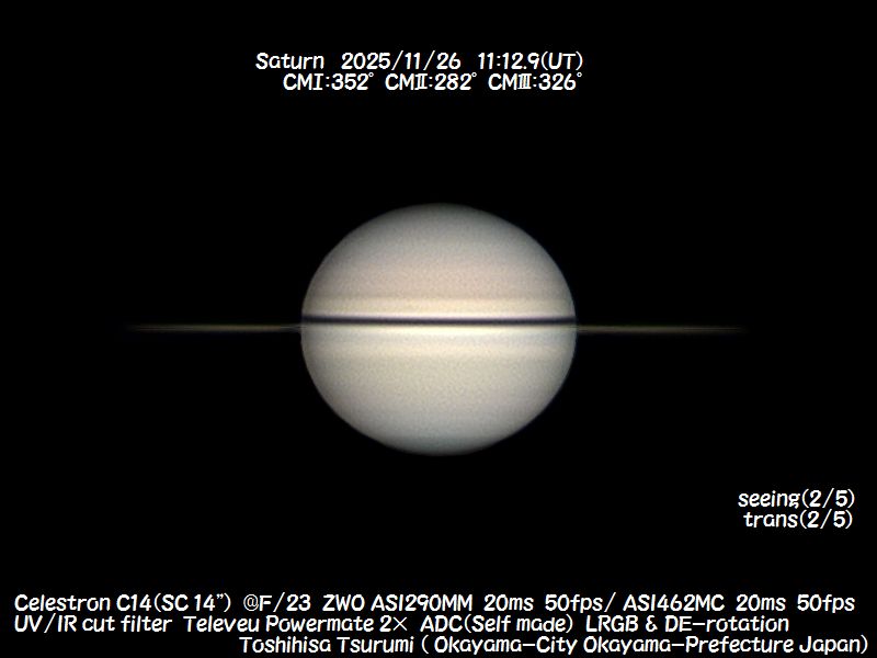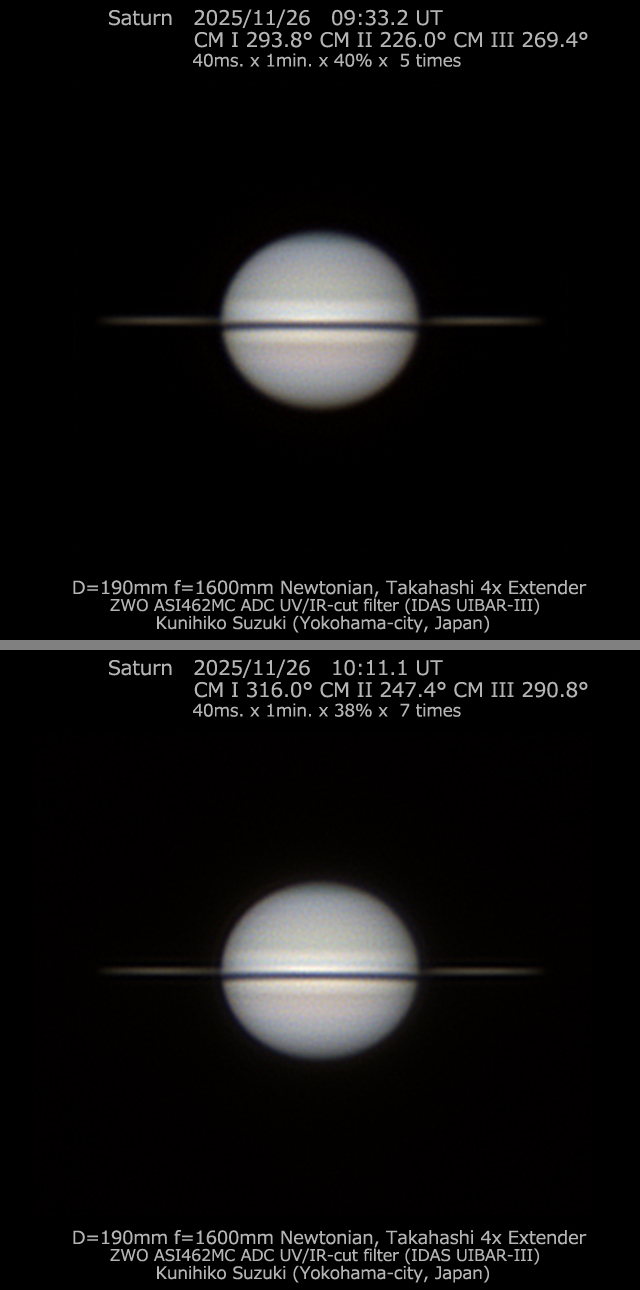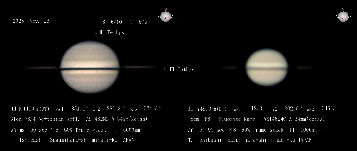 テチスが経過中でした。25日よりも環が見やすいようにも思いますが、25日は気流負けで環がボケたのかもしれません。