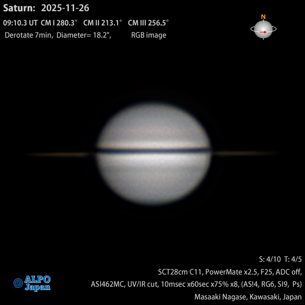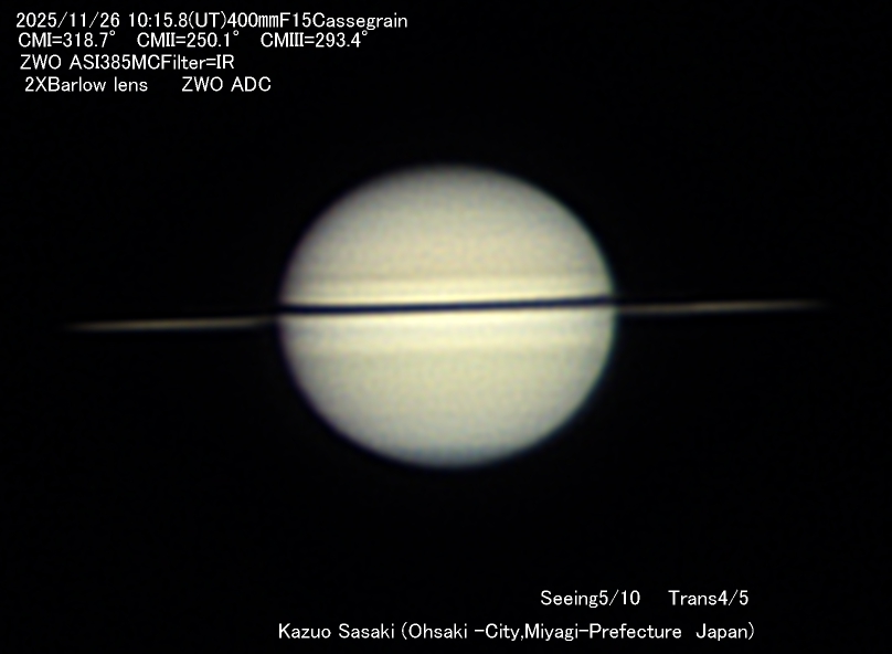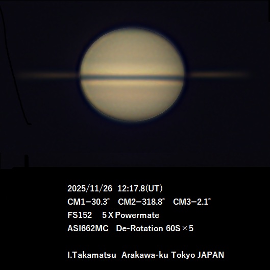 昨日は欠測してしまいましたが、今月の土星の環、準消失は「細くはっきり見えていた」と言うことになります。