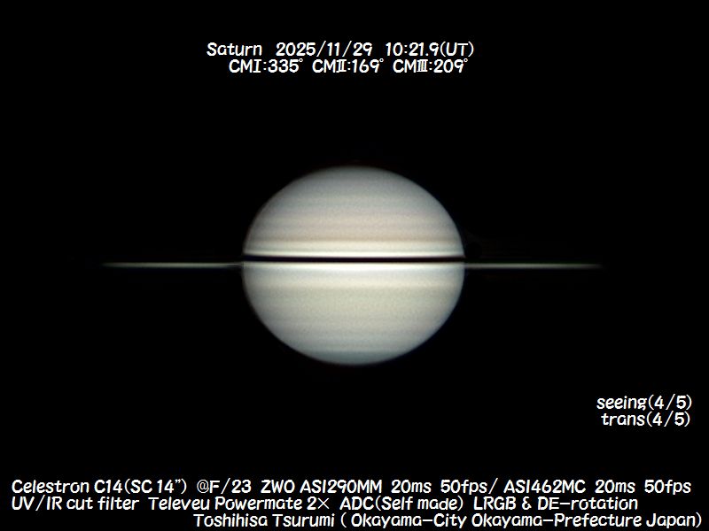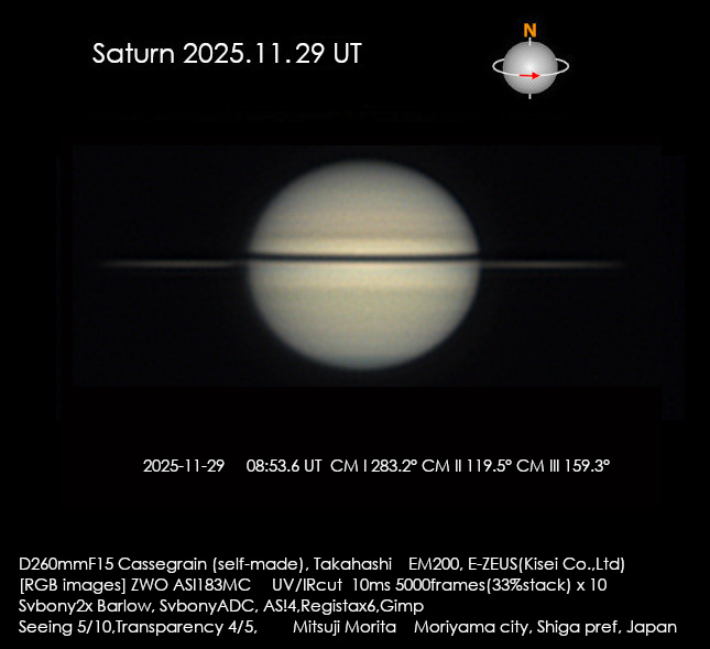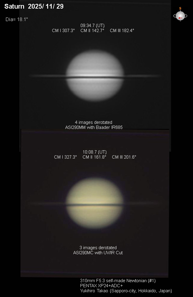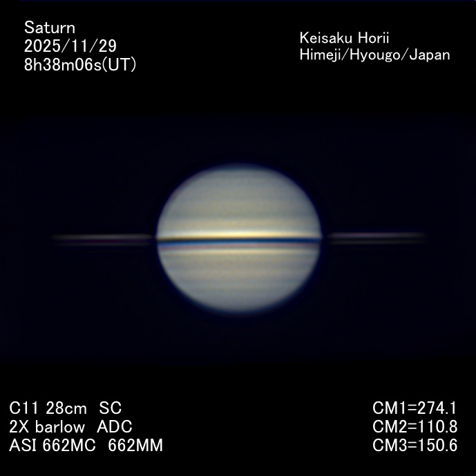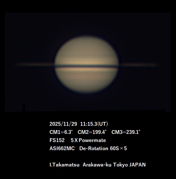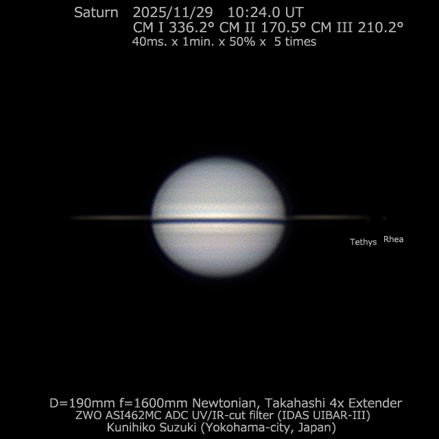 100msで撮ったものには、環と重なった様です。その右側にもう一つ衛星がありますが、同定できませんでした。
