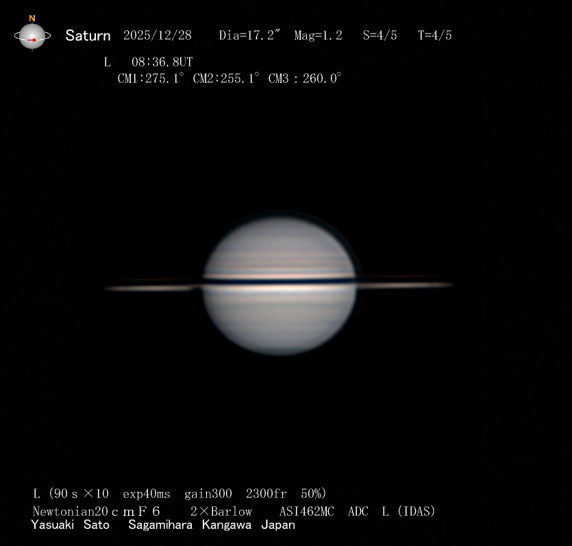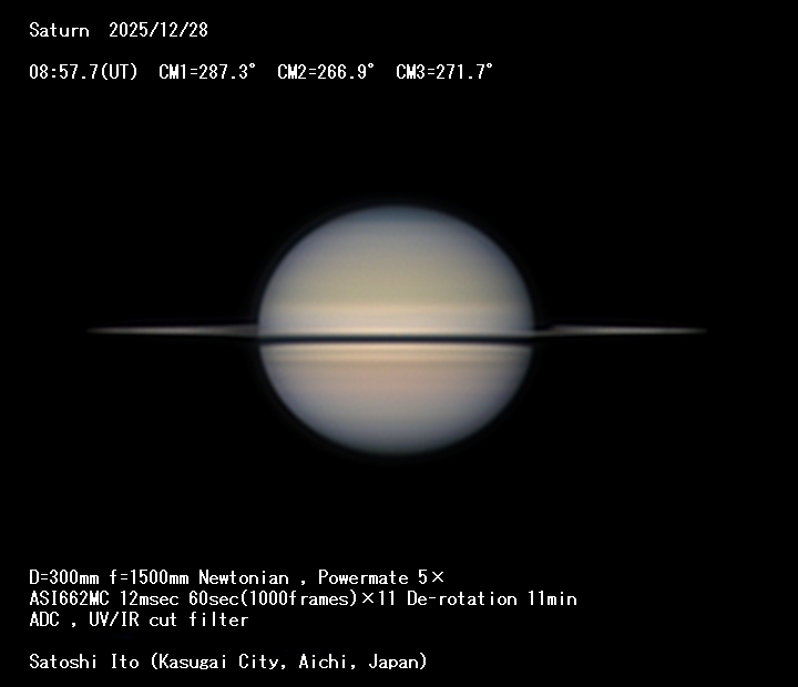 久しぶりの好シーイングでした。縞模様も見えていました。