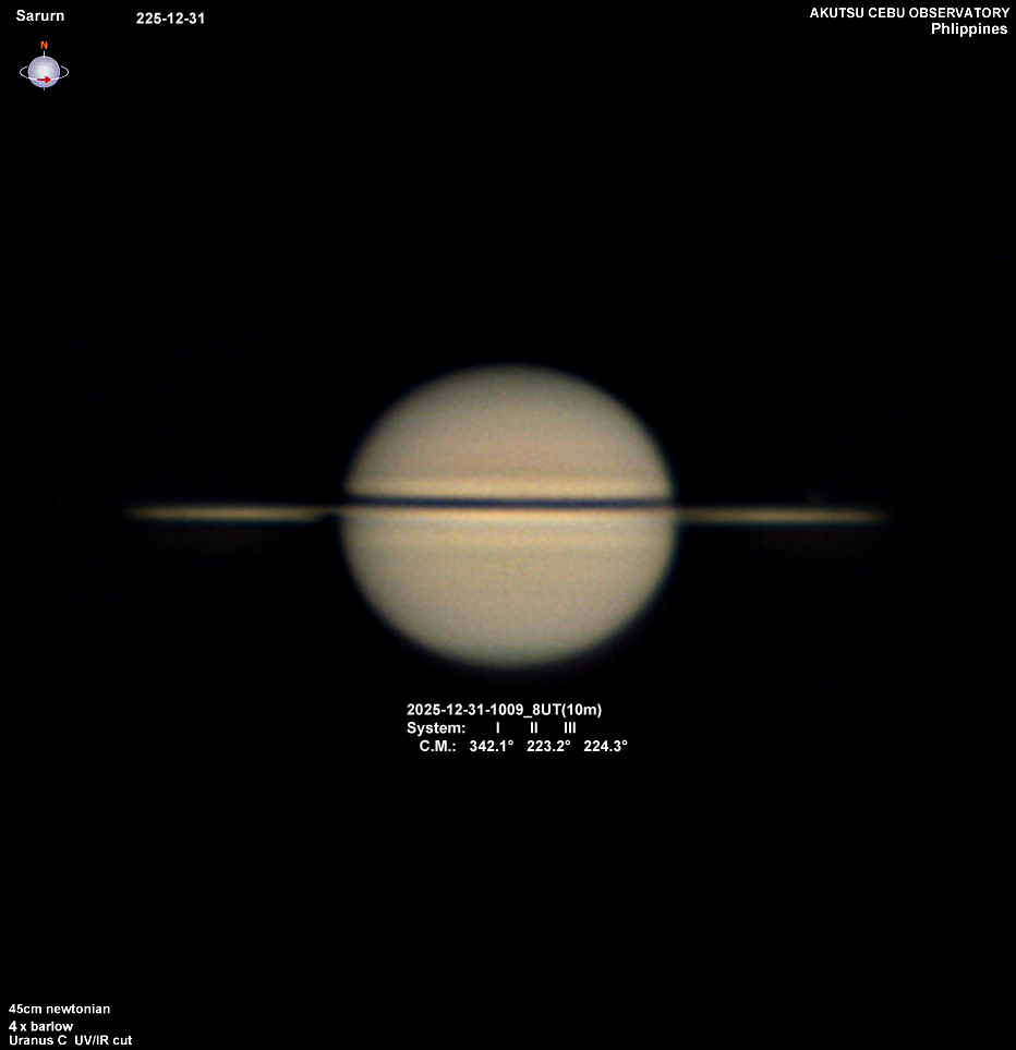 夕方には西空に移り、撮像は悪い気流が多くなった。土星の環は南側が見える様になってきた。 ≪Cebu PHILLIPINES 阿久津富夫≫