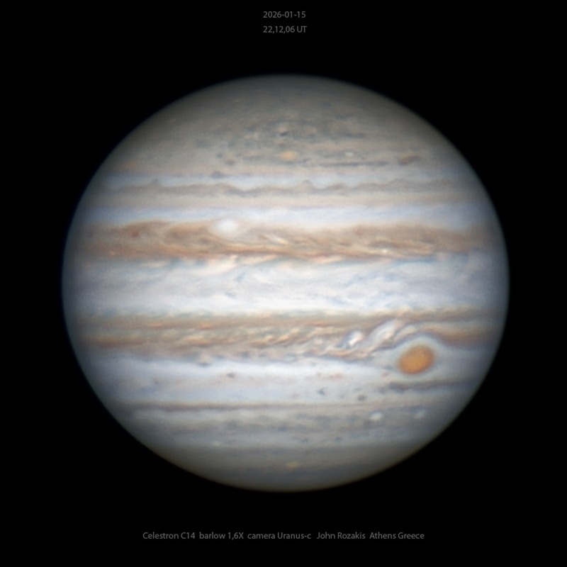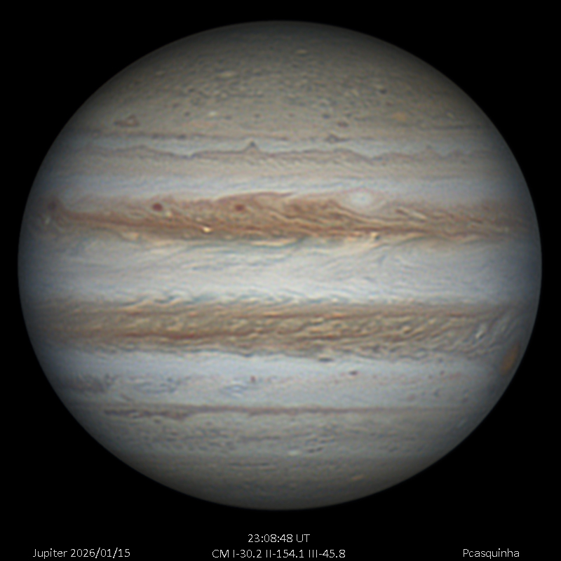 大赤斑が左端で暗い縁取りに囲まれた明るいオレンジ色に見えていました。