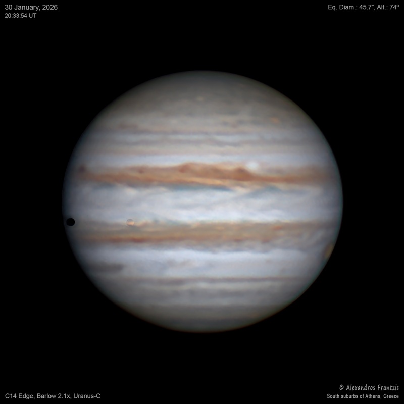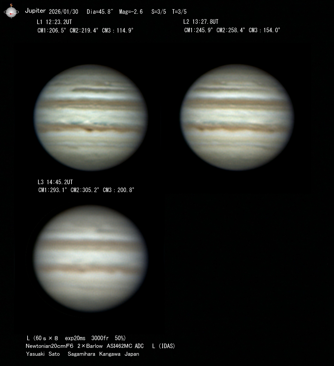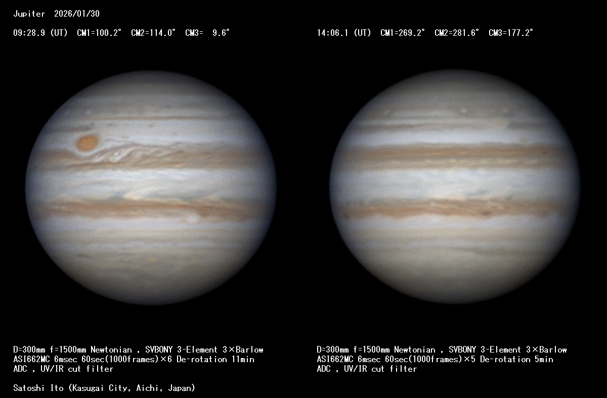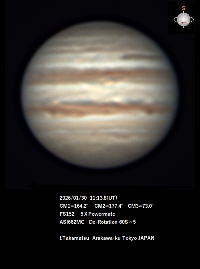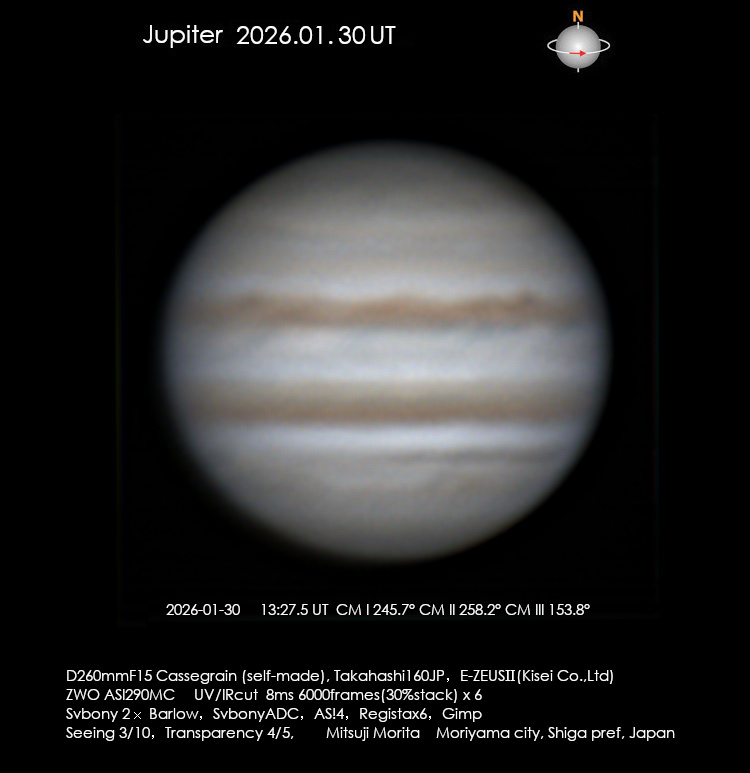 1月30日の木星です。フォトショップ起動しなくなって処置、キャプション入れに手