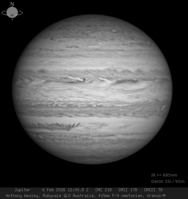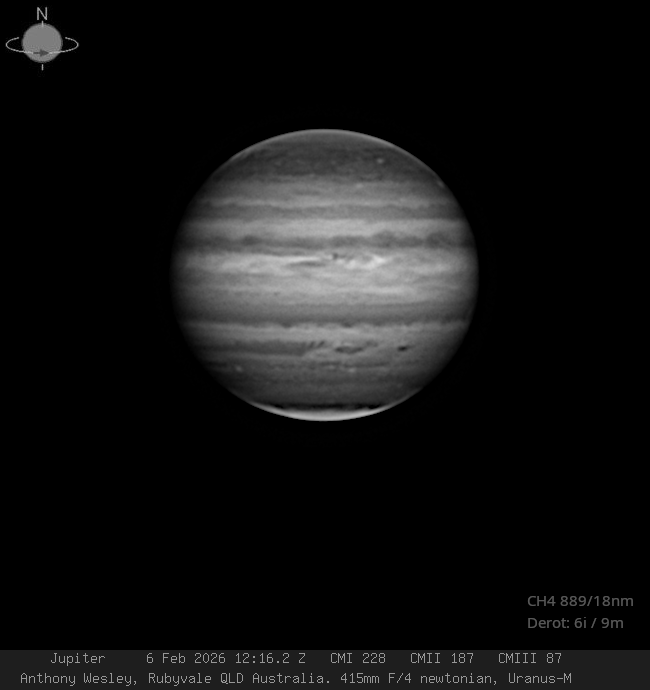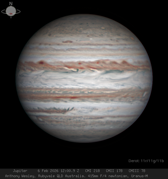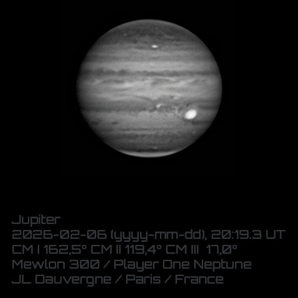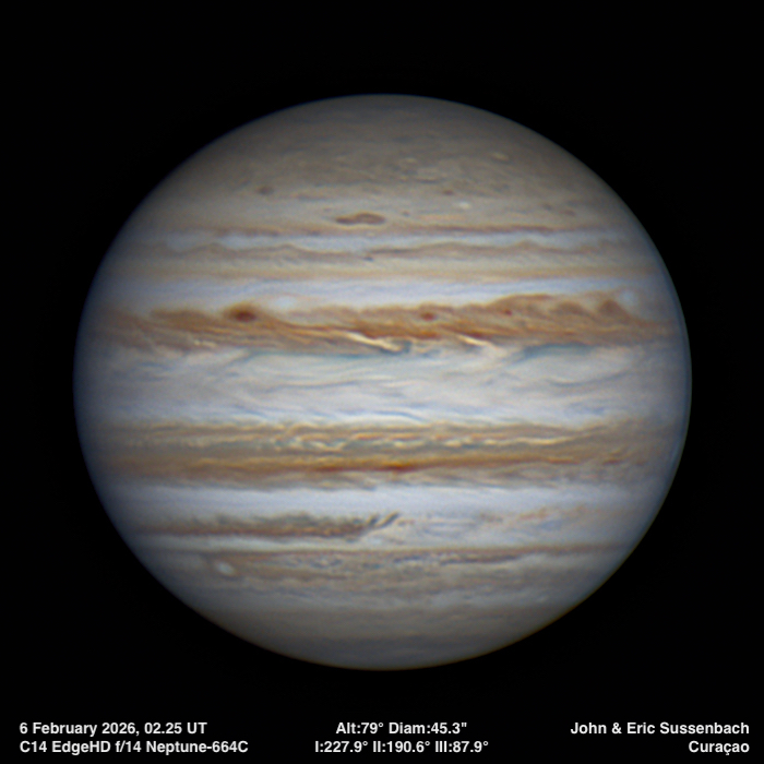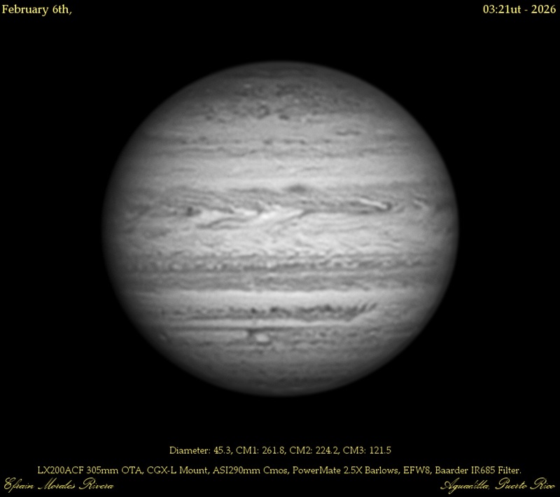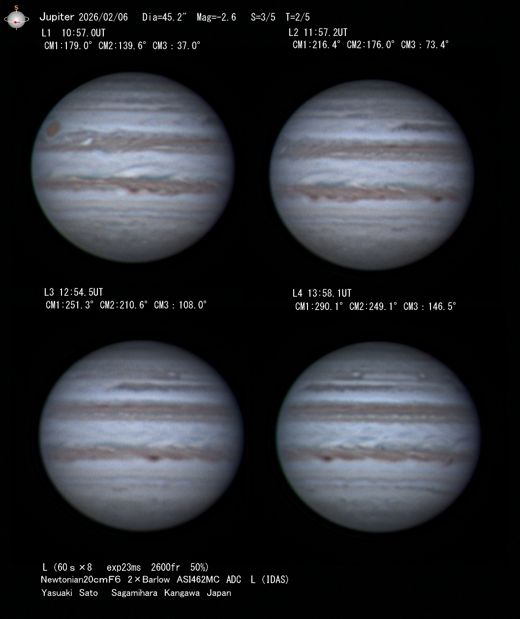 I have attached my first RGB images of Jupiter with a new ASI585MM Pro camera on February 6,2026 at 00:22 UT.