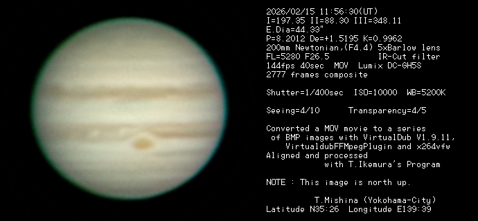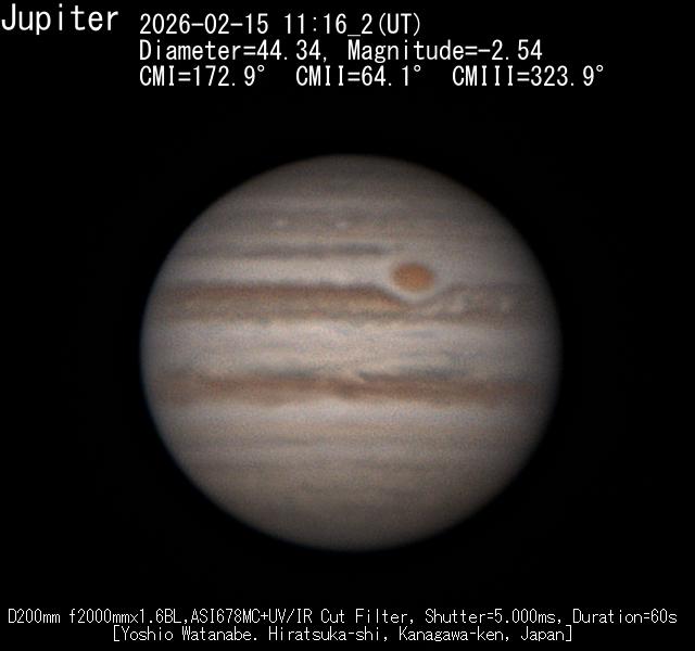 Jupiter Image 2026/02/15(UT)