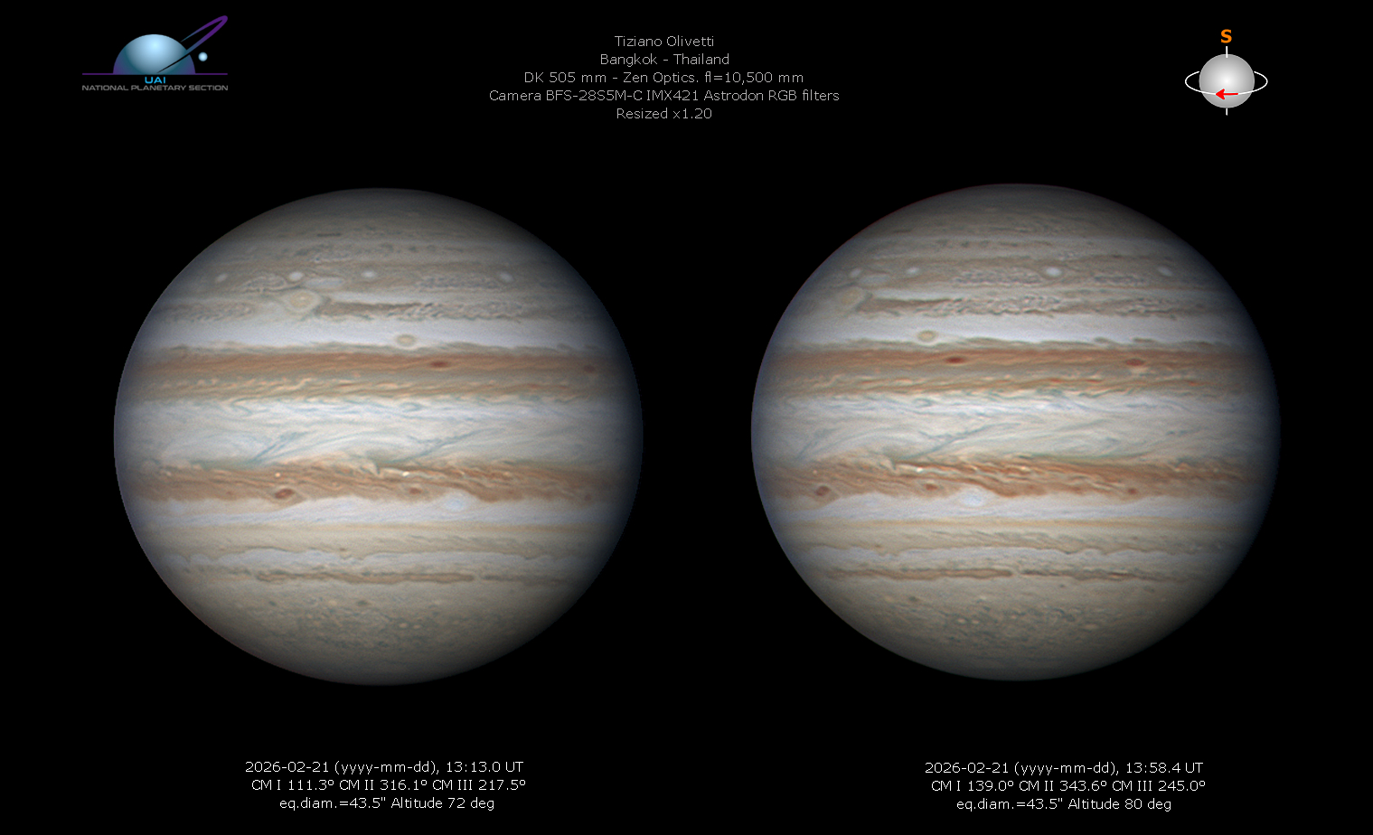 Jupiter Image 2026/02/21(UT)