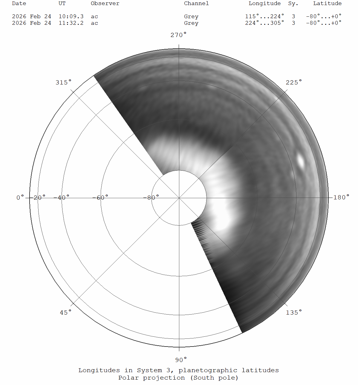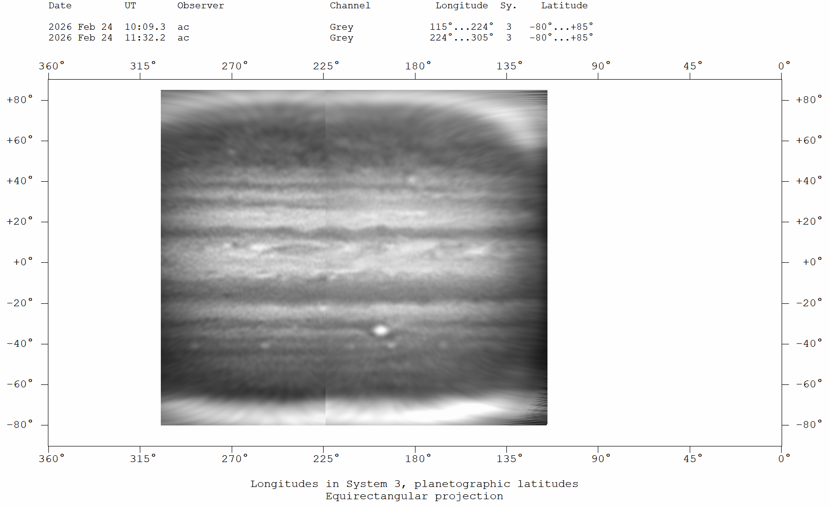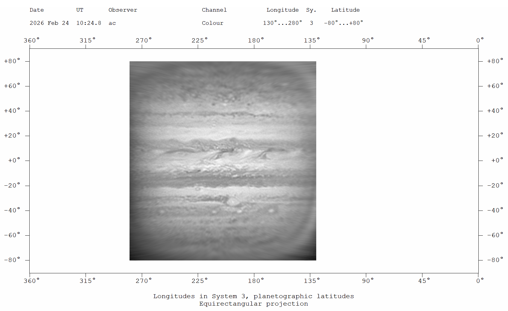 ere's a nice image set from Tuesday in good seeing, with Oval BA in view, and hopefully just a little helpful for the various professional observing campaigns too. Quite a lot of detail in the two methane images and in IR, even towards higher latitudes, with a couple of northern FFRs appearing in IR. The ring on the STrZ is resolved in IR, and appears as a bright spot in methane. I've added maps for the IR and methane data. The second methane image was with the 585MM and 2x binning, which worked quite well in relation to my usual 462MC methane imaging. I also played around with the preprocessing blur feature in Autostakkert which definitely helped the image selection and alignment and measurably improving the stacked output for the images, particularly the methane. These are probably close to my limit with low altitude and summer seeing, they were my best and most enjoyable Jupiter data for a couple of years. Bring on higher altitude again! Clear skies all![]()