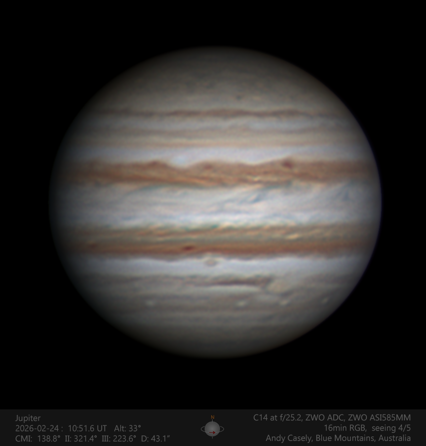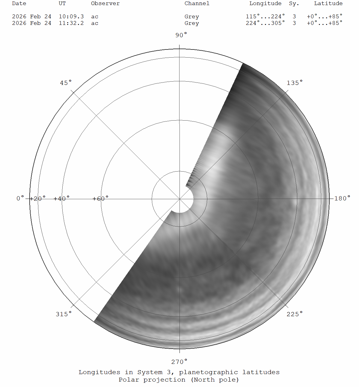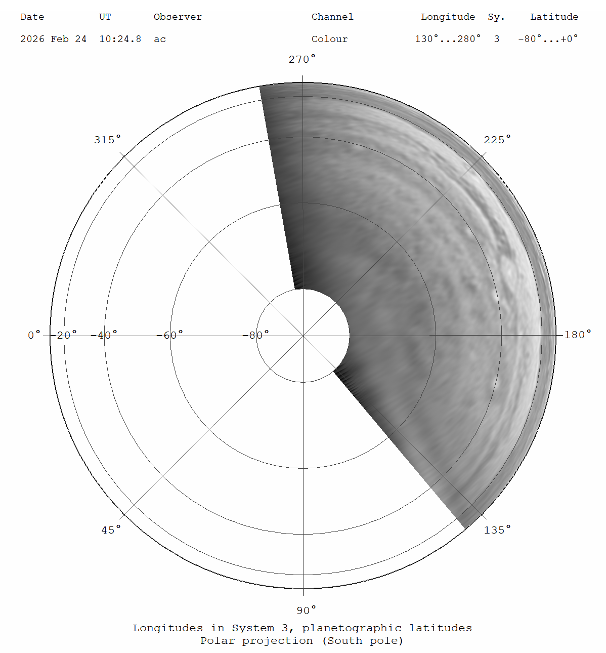 ere's a nice image set from Tuesday in good seeing, with Oval BA in view, and hopefully just a little helpful for the various professional observing campaigns too. Quite a lot of detail in the two methane images and in IR, even towards higher latitudes, with a couple of northern FFRs appearing in IR. The ring on the STrZ is resolved in IR, and appears as a bright spot in methane. I've added maps for the IR and methane data. The second methane image was with the 585MM and 2x binning, which worked quite well in relation to my usual 462MC methane imaging. I also played around with the preprocessing blur feature in Autostakkert which definitely helped the image selection and alignment and measurably improving the stacked output for the images, particularly the methane. These are probably close to my limit with low altitude and summer seeing, they were my best and most enjoyable Jupiter data for a couple of years. Bring on higher altitude again! Clear skies all![]()