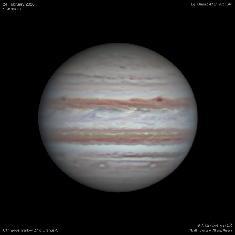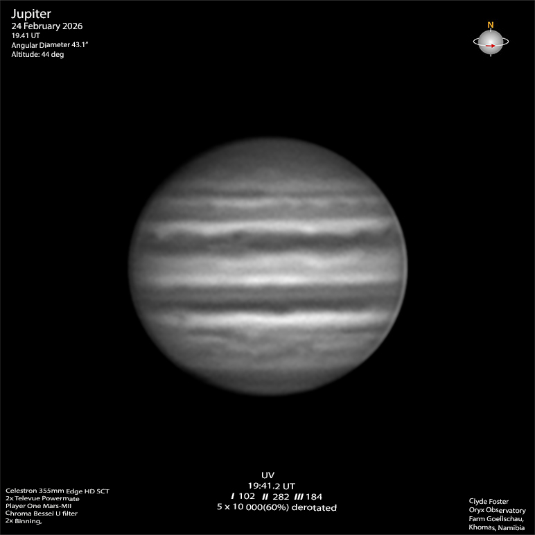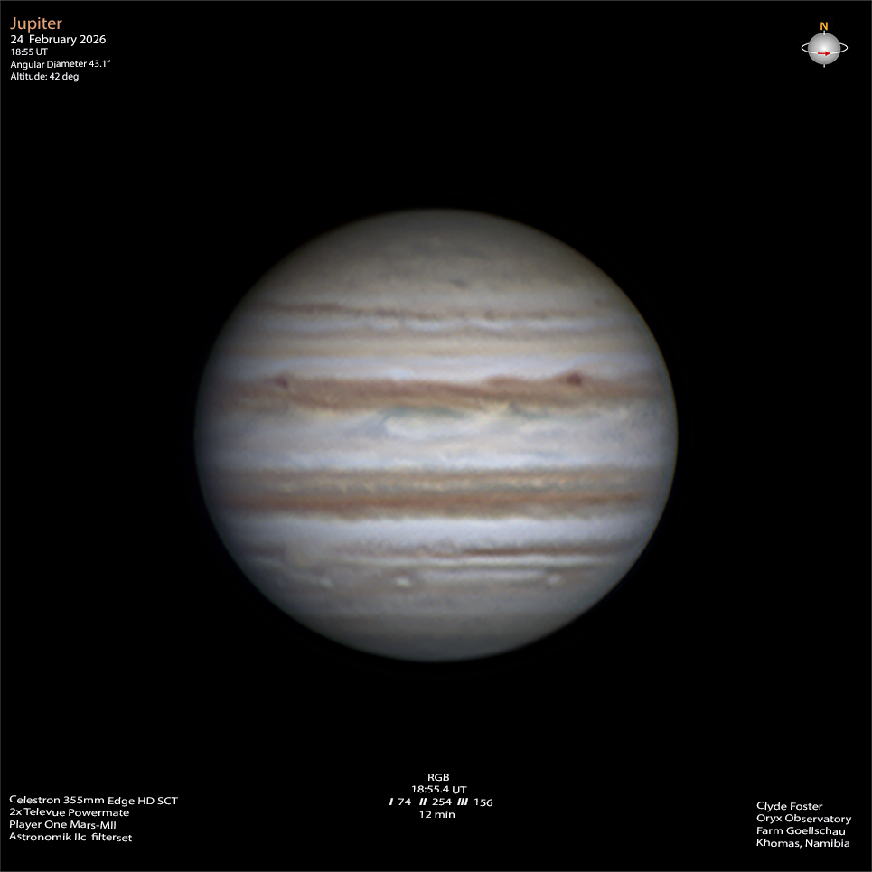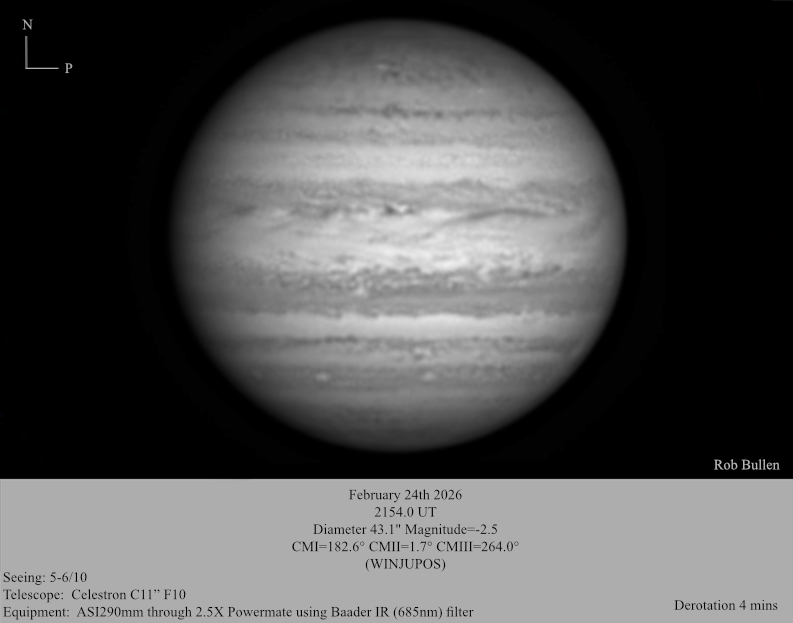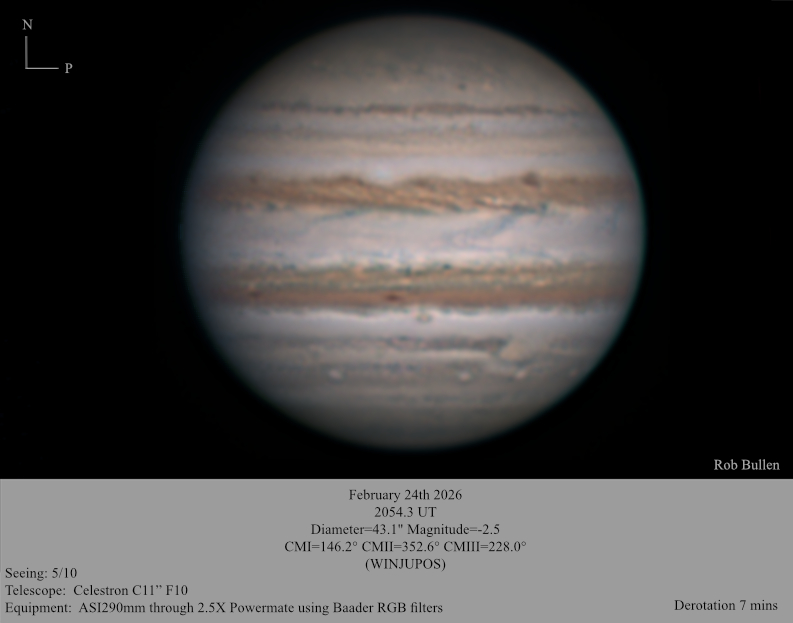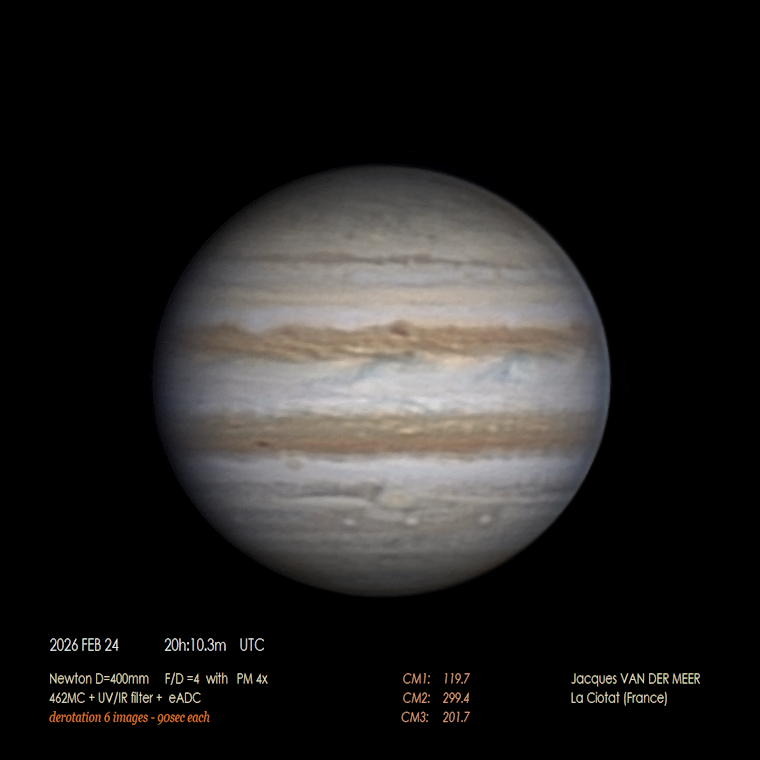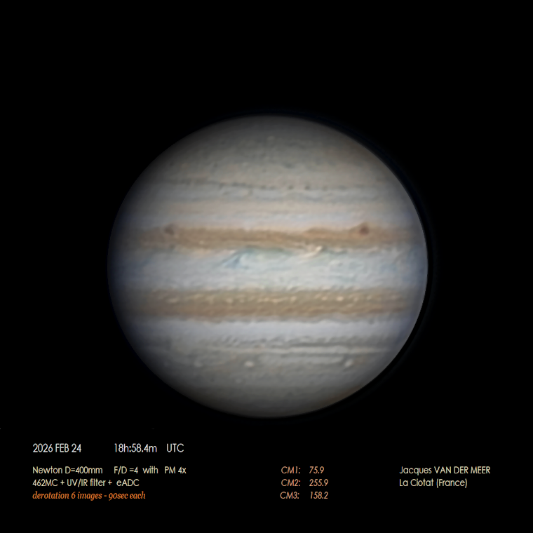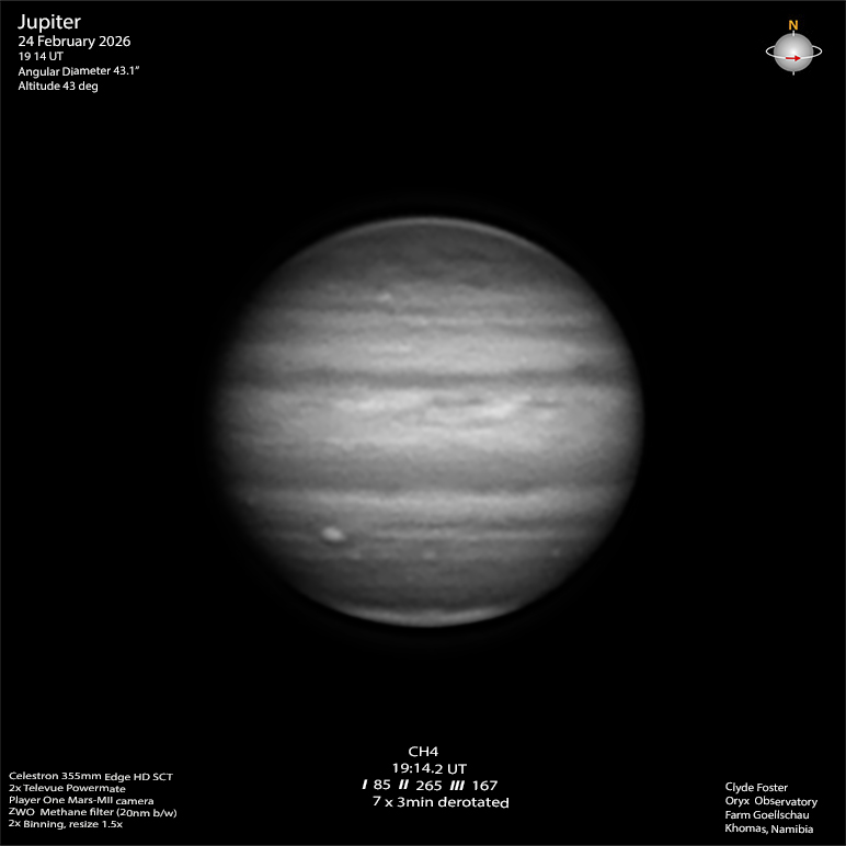 久々の木星。少し晴れて気流は並の気流です。GRS前方からGRSまでの位相で大きな変化無いようです。