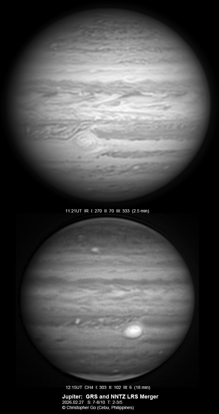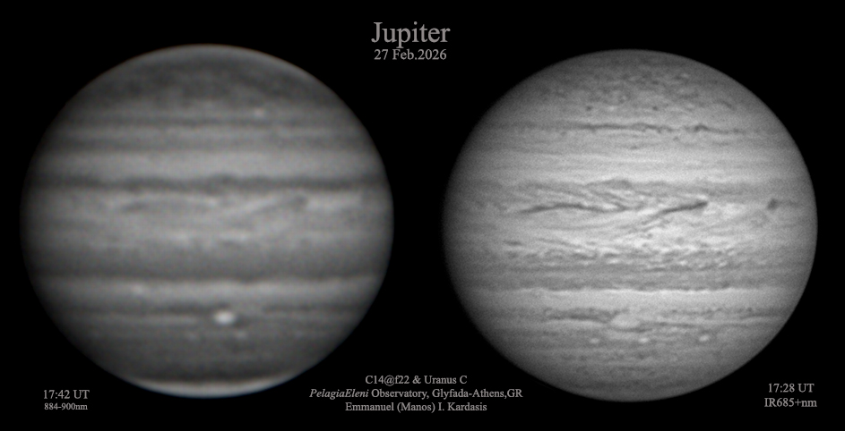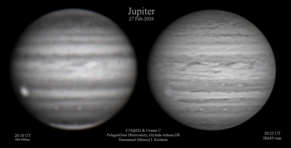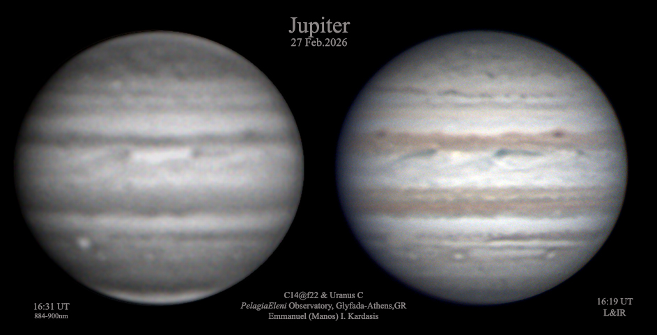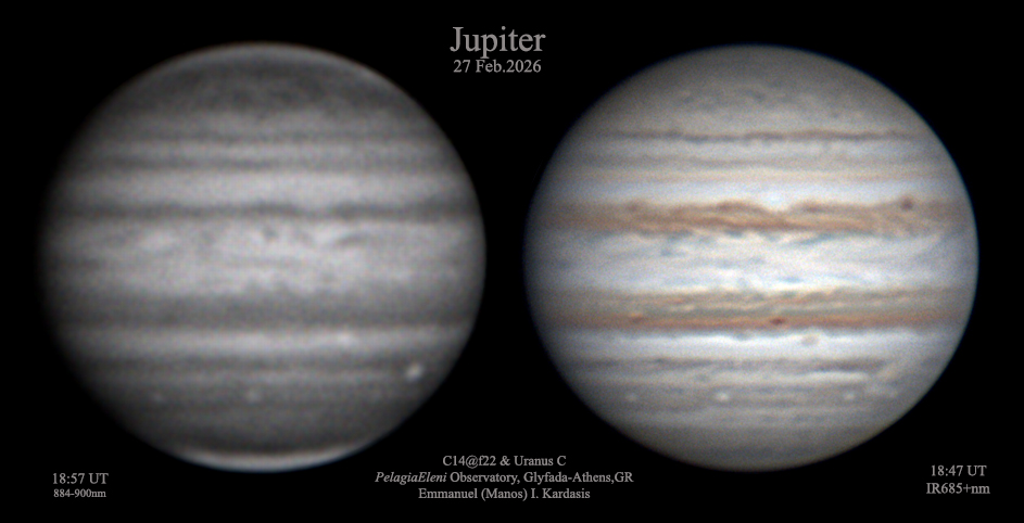 This is Jupiter on February the 27th in RGB and IR. The jetstream erased all of the fine details.