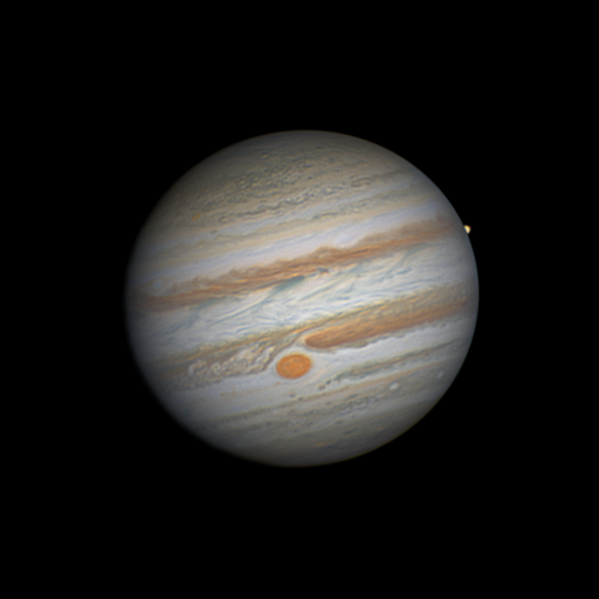 8 images captured using a 685nm longpass filter were derotated and combined in Winjupos to make this result.
