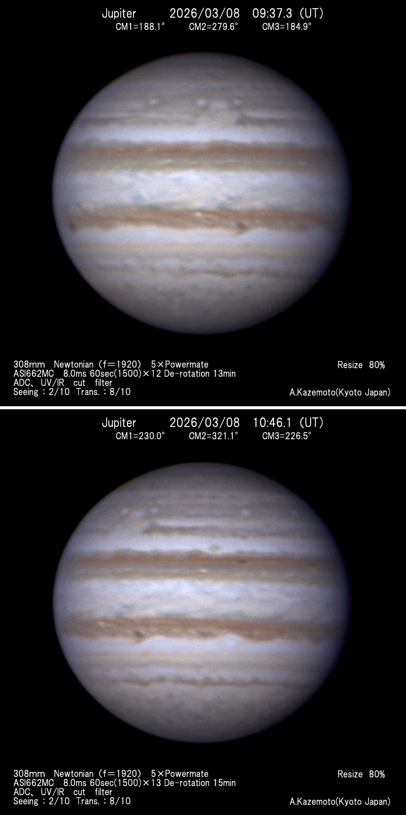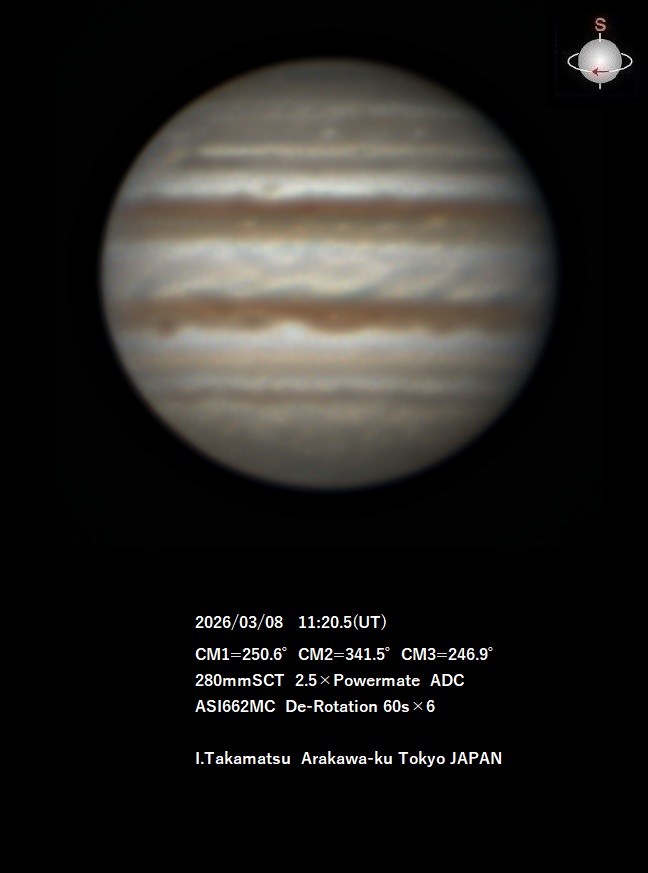 冷たい北東風の吹く快晴。相変わらずシーイング不良で常時細部がぼやけている。
