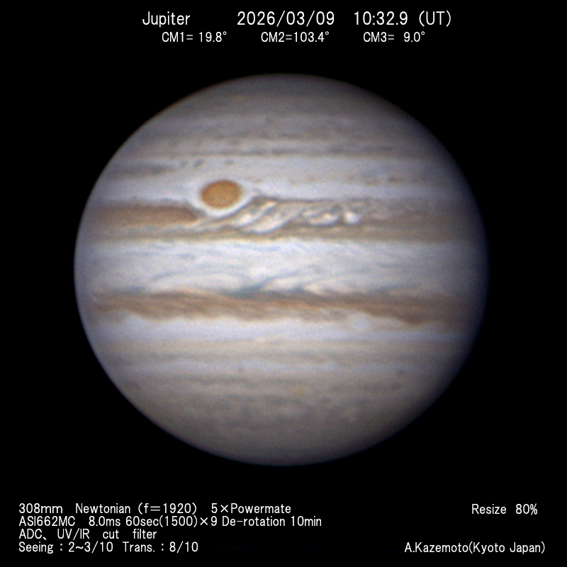 大赤斑は外縁が濃いので、とてもクリアに見えます。