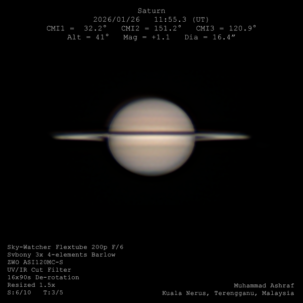 Managed to catch up with the backlog. Poor conditions on 26 Jan,with limited useable data,and I suspect the lightish feature on the preceding limb below the rings to be a processing artefact.[Clyde Foster : Khomas,Namibia]