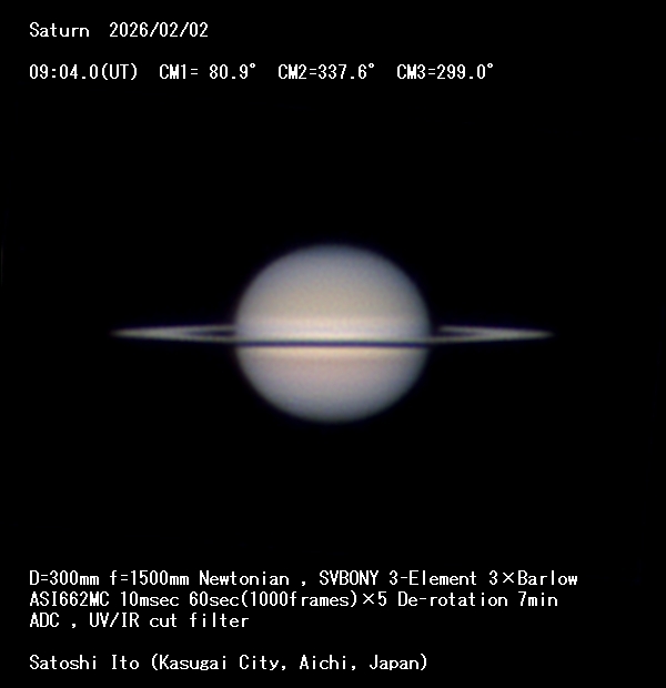 前回の像揺れは斜鏡スパイダーの張力を上げるようネジの増し締めで直ったようです。 シーイング悪く詳細わかりませんが記録として報告します。≪愛知県 春日井市 伊藤了史≫[Satoshi Ito. Kasugai City,Aichi,Japan]