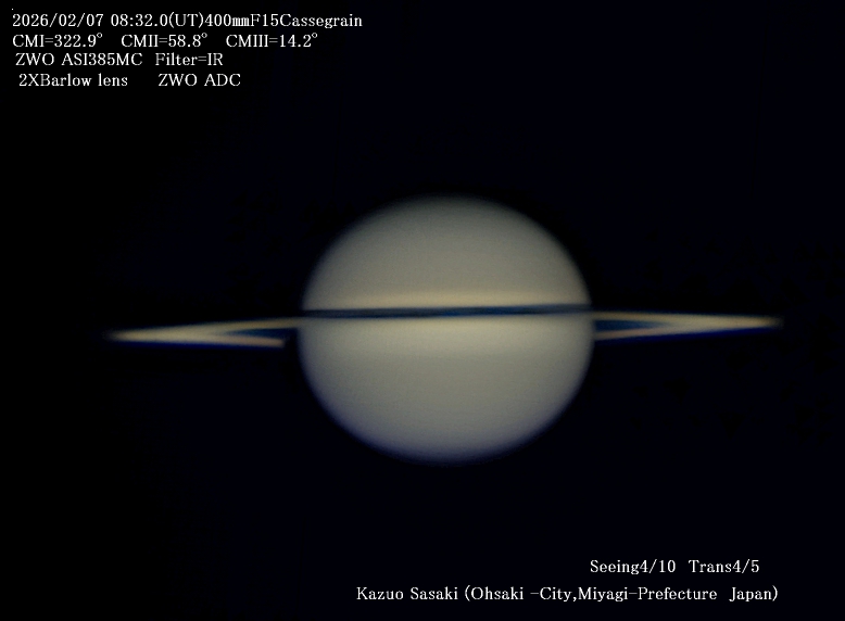 土星も西に傾き冬の気流とともに厳しくなりました。 [K.Sasaki:Ohsaki-City Miyagi-Prefecture Japan] ≪宮城県大崎市 佐々木一男≫