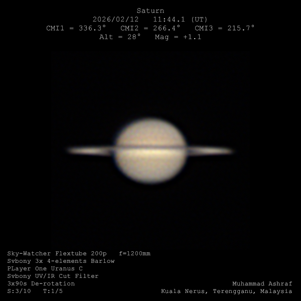 Saturn Image 2026/02/12(UT)