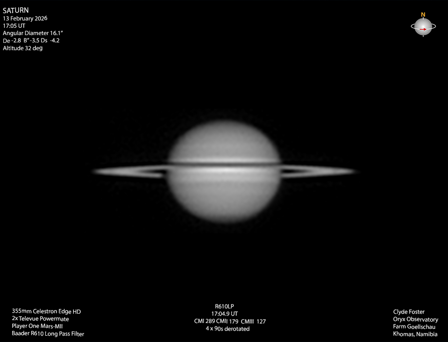 Given the challenging conditions so late in the Saturn apparition, I found a short period of reasonable conditions about half an hour before sunset.[Clyde Foster : Khomas,Namibia]