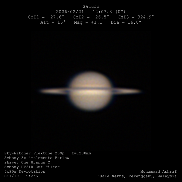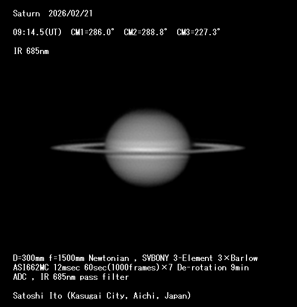Saturn Image 2026/02/21(UT)