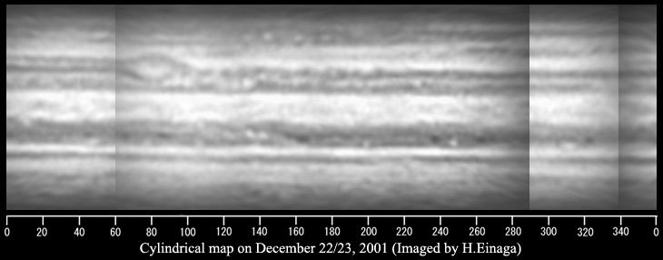 写真3 2001年12月22/23日の木星展開図 撮影/永長英夫氏(拡大) |