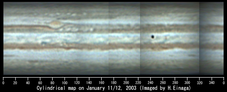図3 2003年1月11/12日の木星展開図 撮影/永長英夫(兵庫県)(拡大) |