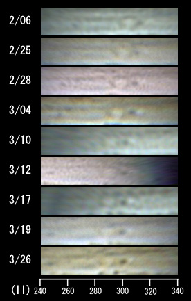 火星は3月には視直径が6秒を越え、ふだん火星を観測している人には、もっとも小さい時の2倍の大きさの火星を見ることができ、いよいよ火星のシーズンがきたという気持ちになってきました。この大きさになると主な模様は肉眼でも見えるようになってきています。