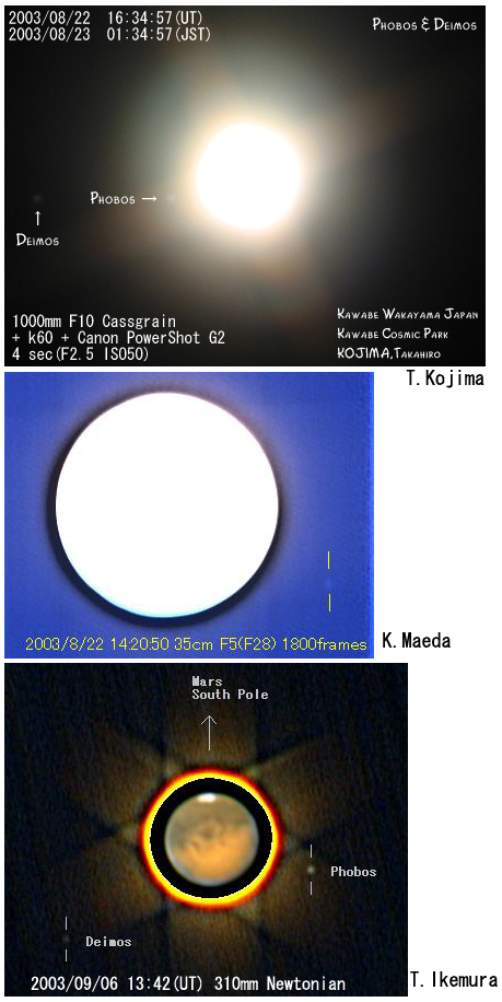 画像3 火星の衛星の検出 撮影/小嶋孝弘(和歌山県、1mカセグレイン)、前田和義(亀岡市、35cm反射)、池村俊彦(名古屋市、31cm反射)(拡大) |