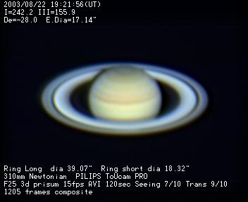 また、明け方には土星が東の空に昇ってきています。火星騒ぎで忘れられていた感じがありますが、今シーズンもリングが南に大きく開いた姿を見せてくれています。