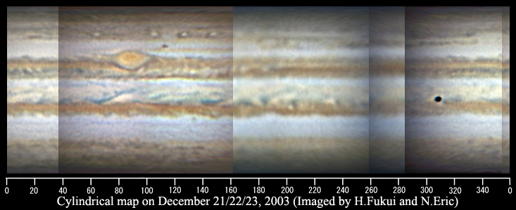画像5 2003年12月21-23日の木星展開図 v撮影/福井英人、Eric Ng(香港、32cm反射)(拡大) |