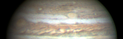 大赤斑(GRS)はII=110°に位置し、南側に暗いアーチがかかっていますが、オレンジ色もあまり強くない状態です。GRS前方のSEBsは、かなり凸凹がありますが、気流が悪くて詳細は不明です。GRS後方のSEBには、もう一つのoutbreakの活動が見られます。12月にはII=180°に明るい白斑が出現し、1月には活動領域がII=210°まで拡がりました。しかしながら、2月に入ると白斑の活動は弱まっており、通常の大赤斑後方擾乱領域と区別ができなくなってしまいました。それより、後方からせまってきているoutbreakの白斑群が問題で、2つの活動が混ざり合ってしまうのか、それともきれいに分離したままなのか、3-4月の観測が興味深くなってきました。