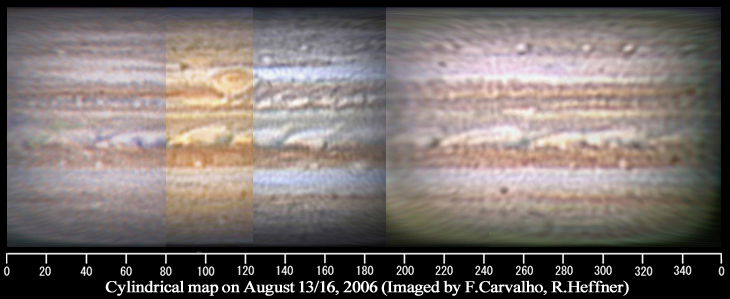 画像5 2006年8月13/16日の木星展開図 撮影/ 月惑星研究会(拡大) |