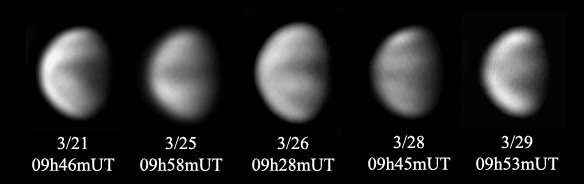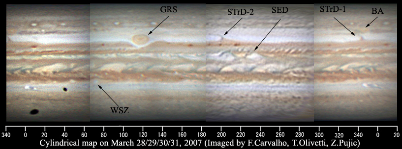 画像4 2007年3月28/29/30/31日の木星展開図 撮影/月惑星研究会(拡大) |
