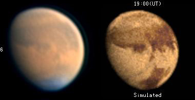 [図1] ダストストーム後の火星とシミュレーション画像 |