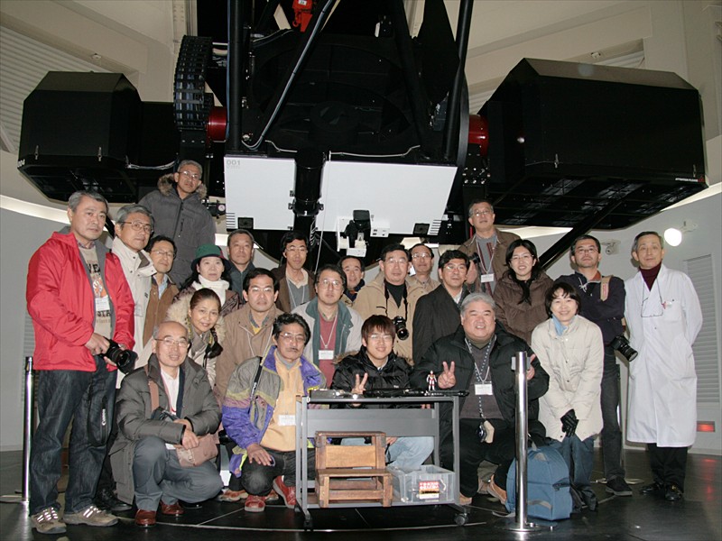 [図3] 仙台市天文台の1.3m望遠鏡と木星会議参加者 |