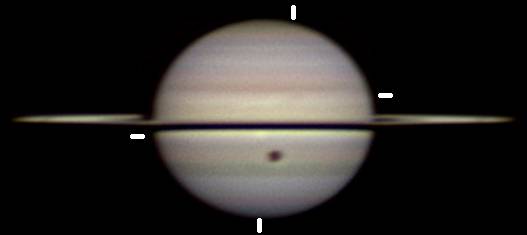 度があり、環の影のすぐ北側に貼りつくように位置していて、経度は23日にI=