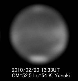 した(図2)。ダストストームと同じ緯度に当たります。北極冠の周縁がかすんで