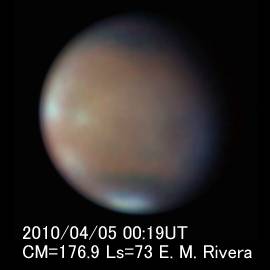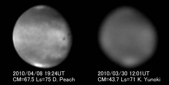 で観測されました。北極冠では、夜明け直後のリムに常に白雲が見られ、極冠の
