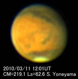 流が発生するらしく、極冠がしばしば黄色く観測されます。昔から小さくなった
