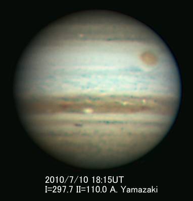 [図2] 大赤斑前方の木星面 撮像:山崎明宏氏(東京都、28cm) |