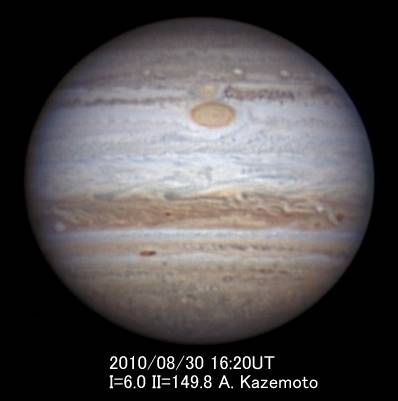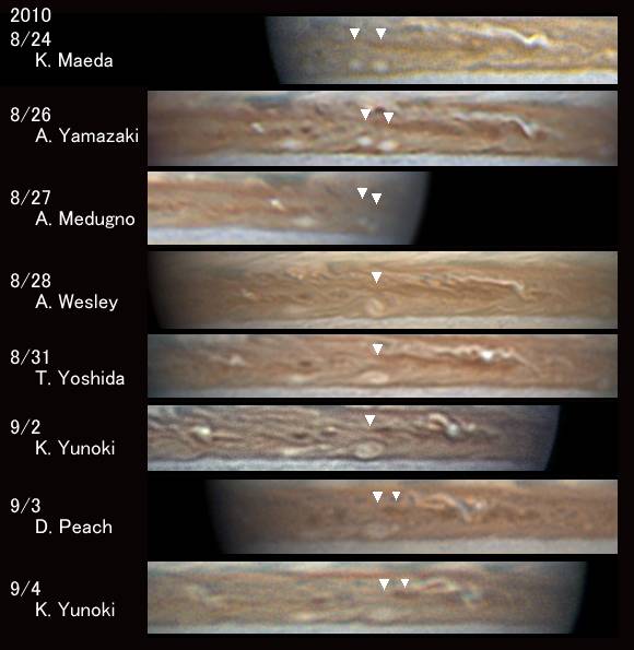 明るく見えます。伊賀祐一氏は、8月末にII=270°付近で2個の白斑が合体したと