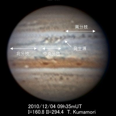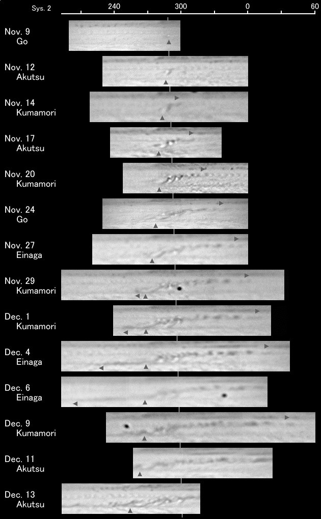 南分枝の暗班は形も間隔も不揃いで、12月には数個の暗班が合体し、2ヵ所で大