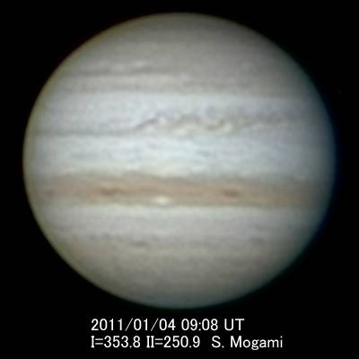 木星面の他の領域では、大きな変化は見られません。II=86.6°(3日)に位置する