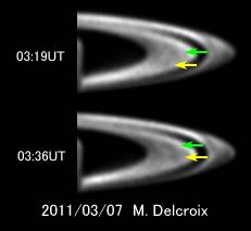 月末には、攪乱本体である中央分枝の先端が大赤斑(GRS)に到達し、大赤斑から
