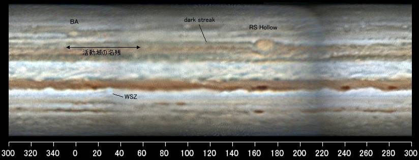 赤斑まで続くストリークは相変わらず顕著です。昨年はSEBの淡化して赤道付近
