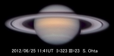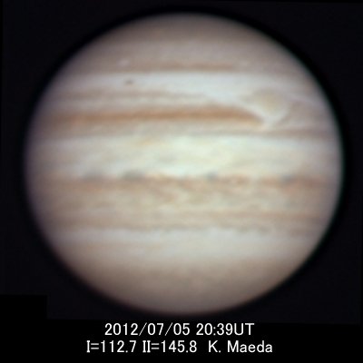 | ストリークが大赤斑前方で途切れている。 撮像:前田和儀氏(沖縄県、50cm) |