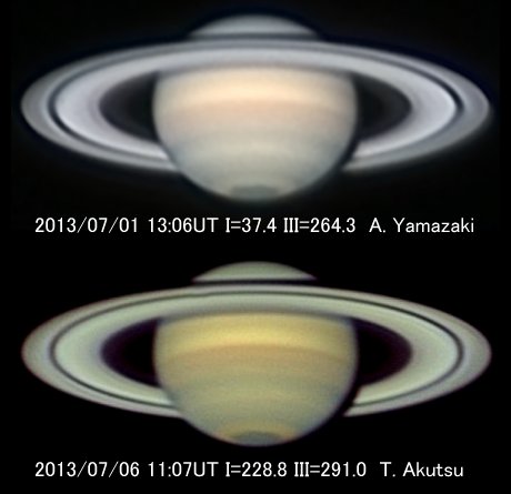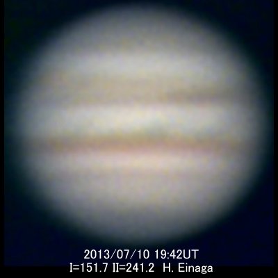 輪郭不明瞭ながら赤みがあります。大赤斑後方のSEBは40°くらいに渡って淡く