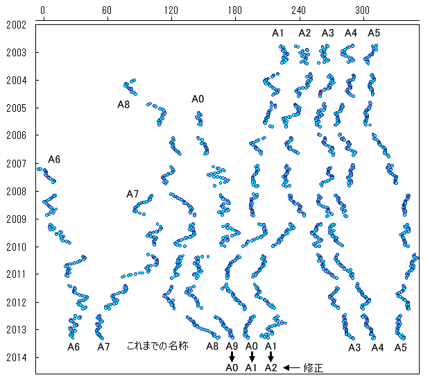 が2010年頃に消失し、A8とA0の間にA9が出現したという解釈に基づいているので