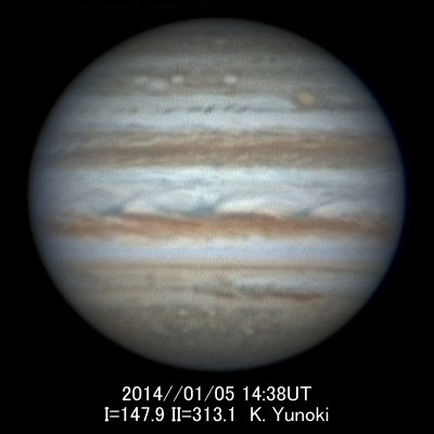 く、眼視では30cmでもほとんど判別できません。細くなった北赤道縞(NEB)は、北縁が大