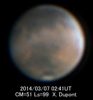 白雲が記録されています。また、中央のシルチスに氷晶雲と思われる、白雲のベールが覆